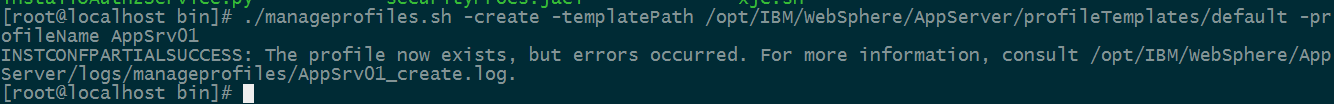 ./manageprofiles.sh -create -templatePath /opt/IBM/WebSphere/AppServer/profileTemplates/default -profileName AppSrv01